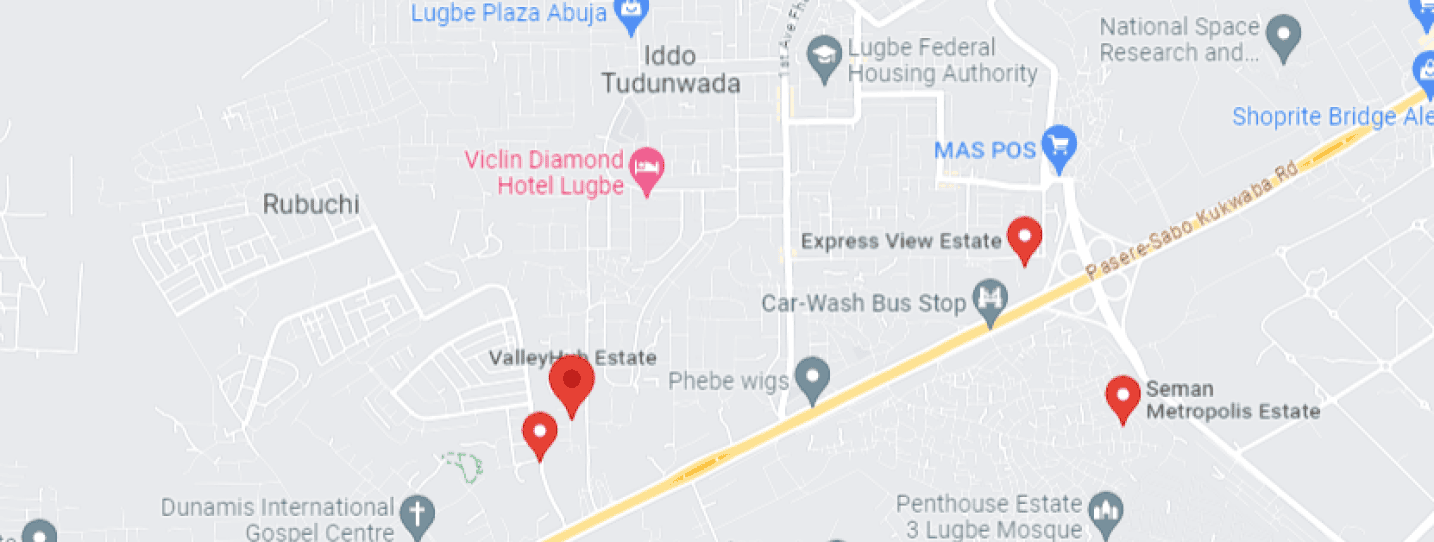 Plot D2, Maazi Fidelis Nwosu Close, Valley Hub Estate (beside River Park Estate), Lugbe, Abuja.